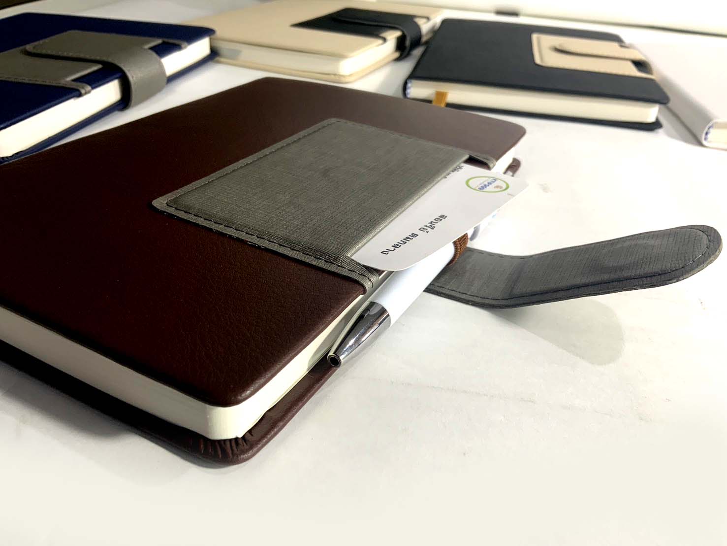 แบบแม่เหล็กปิดปก มีช่องใส่นามบัตร และใส่ปากกา